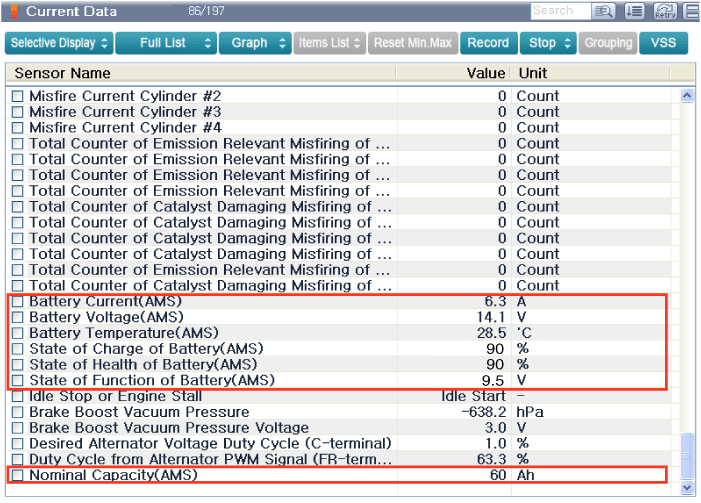 of Battery(AMS) =(0~12V)". [For ISG system only]