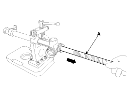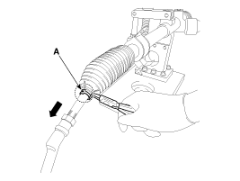 Remove the bellows clip (A) in the direction of the arrow. (The