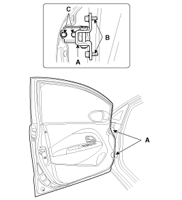 adjust the striker (A): The striker nuts are fixed. The striker can be adjusted