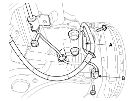 Remove the brake hose bracket (A) & wheel speed sensor (B).