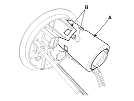 Remove the reservior-cup (B) after releasing the fixing hooks