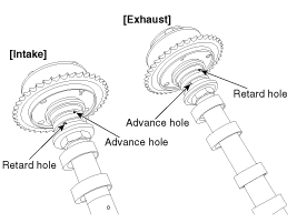 Intake CVVT : Seal one of the two advance holes in the