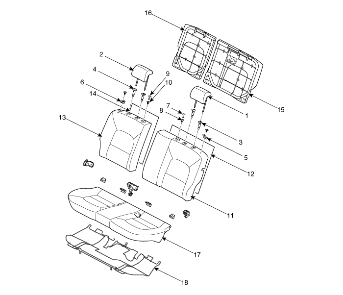 Kia Rio: Rear Seat Components - Seat & Power Seat - Body (Interior and Exterior) - Kia Rio UB 2012-2025 Service ManualKia Rio: Rear Seat Components