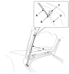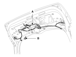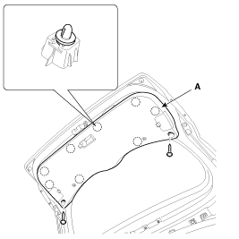 After loosening the trunk lid hinge (A) mounting bolt, adjust