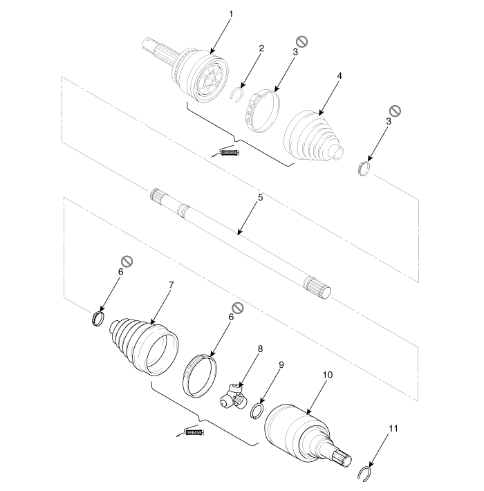 | 1. BJ assembly 2. BJ circlip 3. BJ boot band 4. BJ boot |