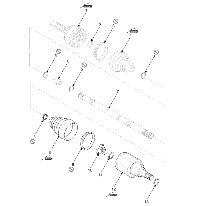 5. Shaft 6. TJ boot band 7. TJ boot 8. Spider assembly |