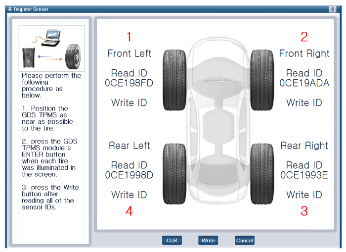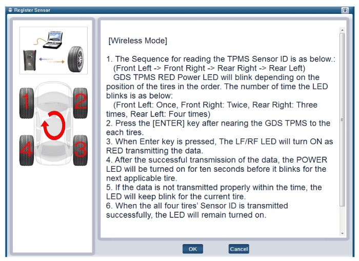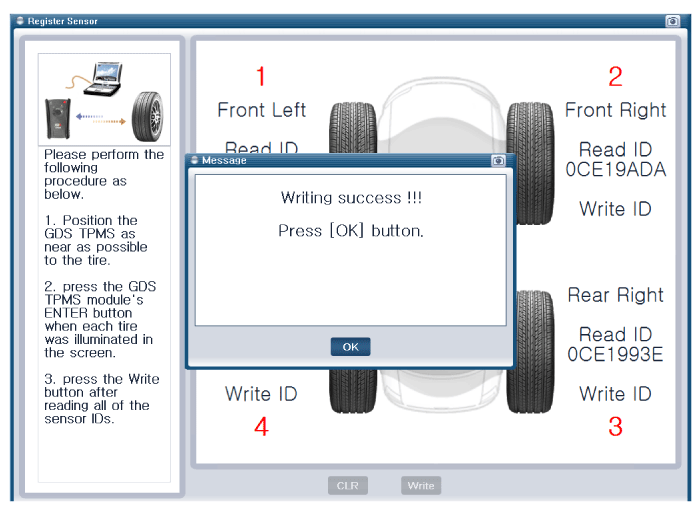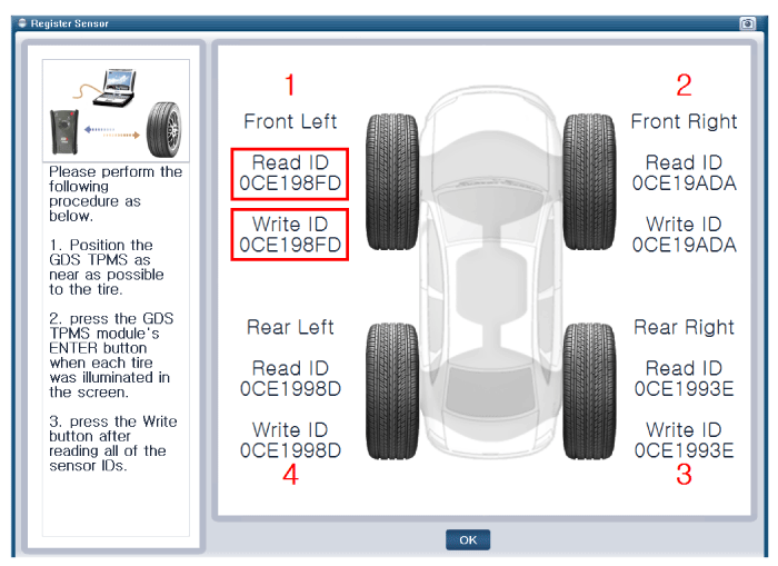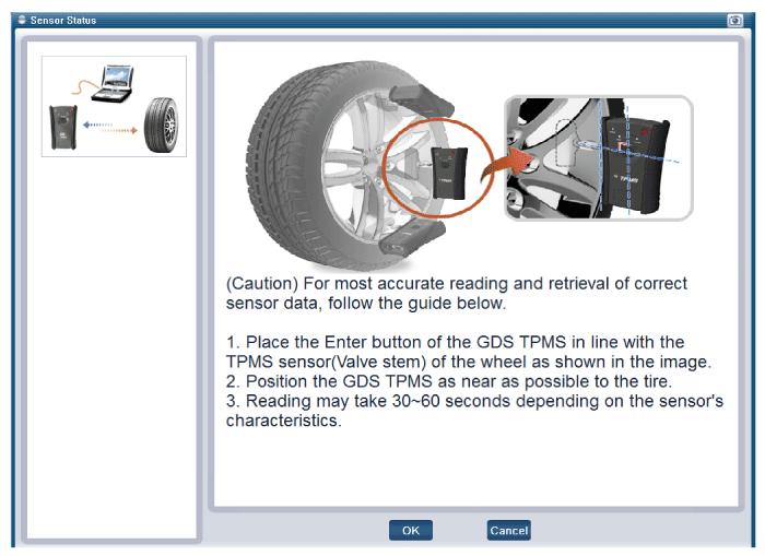 Select the "vehicle model" and "TPMS" on GDS vehicle selection