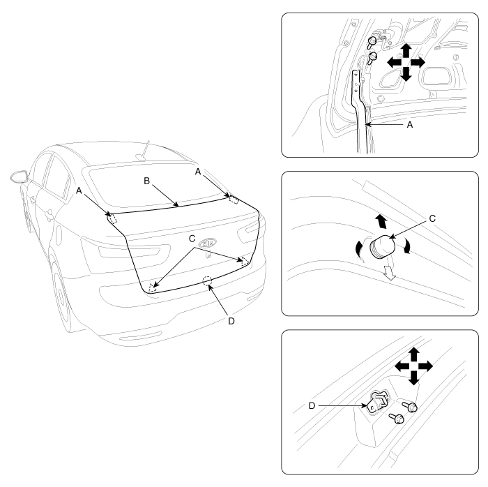 Kia Rio: Trunk Lid Adjustment| 1. |
