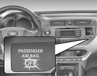 Kia Rio: Air bag warning lightThe purpose of the air bag warning light in your instrument panel is to alert you of a potential problem with your air bag-Supplemental Restraint System (SRS). When the ignition switch is turned ON, the indicator light should illuminate for approximately 6 seconds, then go off.