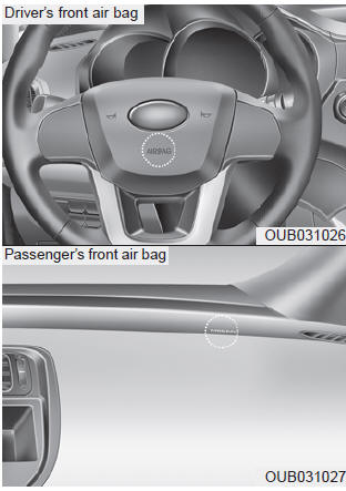 The air bag modules are located both in the center of the steering wheel and in the front passenger's panel above the glove box. When the SRSCM detects a sufficiently severe impact to the front of the vehicle, it will automatically deploy the front air bags.