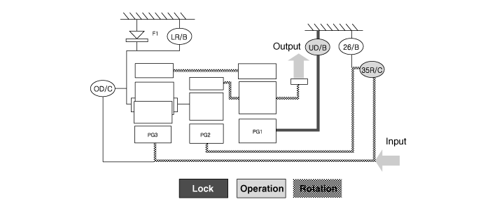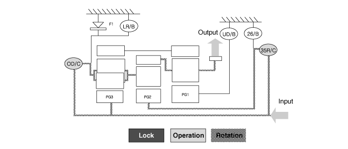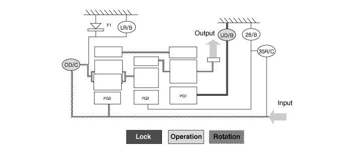 ▶Input shaft rotation → Overdrive Clutch (OD/C) Retainer Rotation