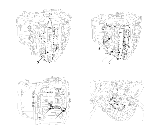 5. Valve body assembly 6. Solenoid valve 7. Inhibitor switch |