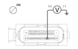 Turn the ignition switch ON, measure the voltage between terminal 29 of the ESC control module harness side connector and body ground.