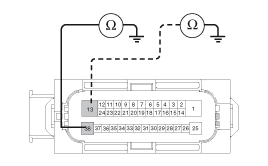 Check for continuity between terminals 13, 38 of the ESC control module harness side connector and ground point.