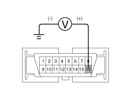 Measure the voltage between terminal 16 of the data link connector and body ground.