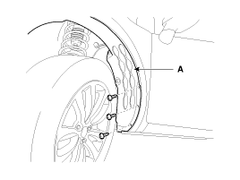 Loosen the wheel guard (A) mounting screws.