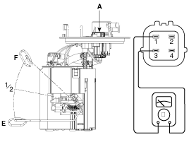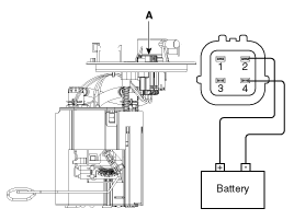 Check motor operation by fuel pump connector (A) connecting power(No.2)