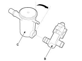 (B) from the fuel tank air filter (C) after rotating it in the direction