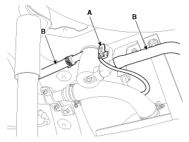 Disconnect the ventilation hose (B) from the fuel tank air filter
