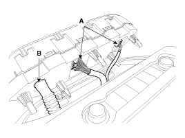 Disconnect the connectors (A) and the air hose (B).
