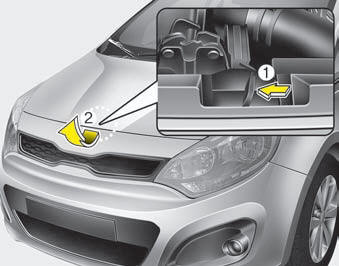 Open the hood after turning off the engine on a flat surface, shifting the shift lever to the P(Park) position for automatic transaxle and to the 1st(First) gear or R(Reverse) for manual transaxle, and setting the parking brake.