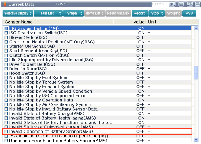 If its value is ON, replace the battery sensor.