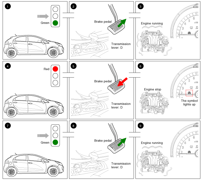 The engine stops. The symbol "AUTO STOP" lights up in the instrument