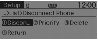 From the paired phone list, select the currently connected device and select [Disconnect] button.