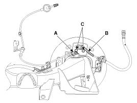 Remove the wheel speed sensor (A) & brake hose (B) from the rear
