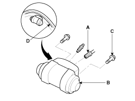 Remove the bolt (C) and the wheel cylinder (B) from the backing