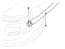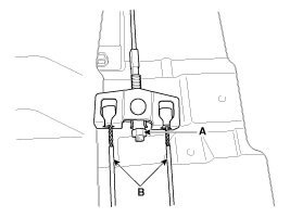 Loosen the adjusting nut (A) and the parking brake cables (B).