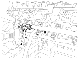 Disconnect the rail pressure sensor connector (A), and then remove