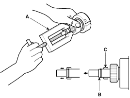 Press the stopper (A) using a socket (B).