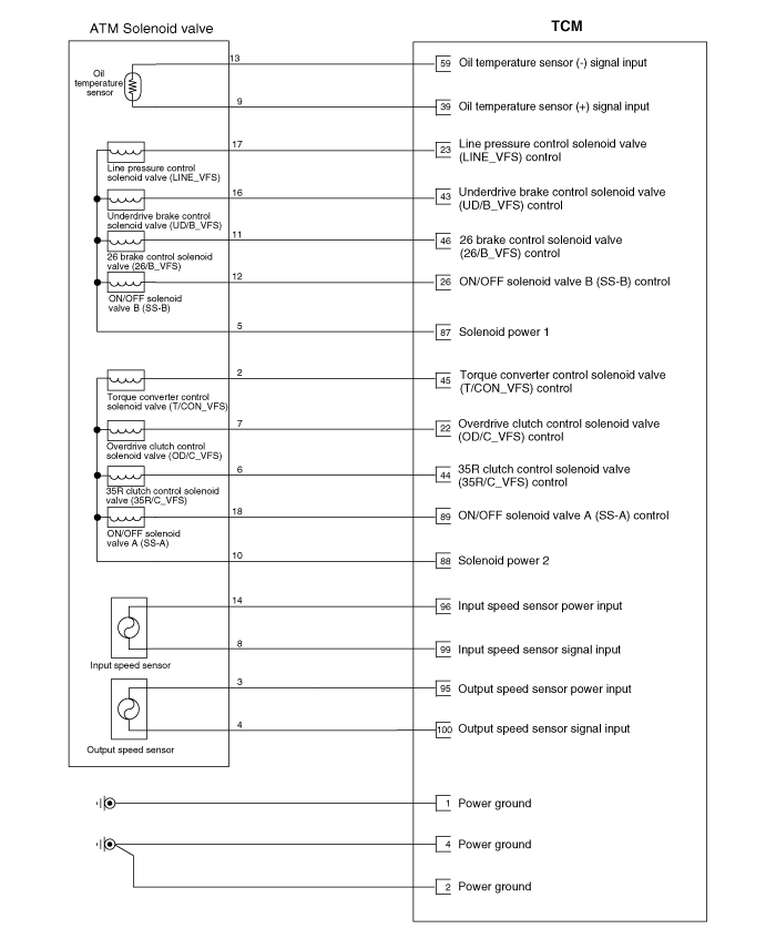 Kia Rio: Transaxle Control Module (TCM) Terminal input/ output signal Circuit Diagram