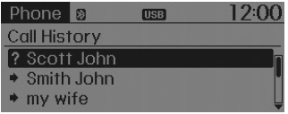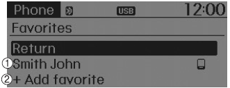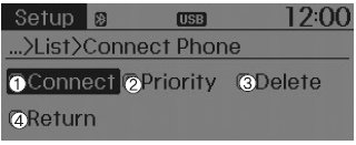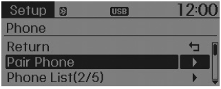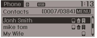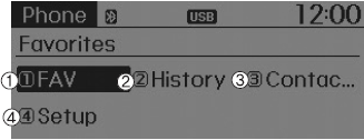 Kia Rio: Using Bluetooth® Wireless TechnologyPhone Menu Screen