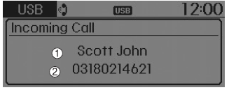 1) Caller : Displays the other party’s name when the incoming caller is saved within your contacts