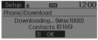 As the contacts are downloaded from the mobile phone, a download progress bar is displayed.